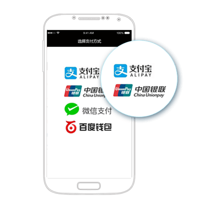 鼎盛支付系统,为iOS/Android原生/H5 App提供支付解决方案:支持微信支付、支付宝支付、银联手机支付、百度钱包等。